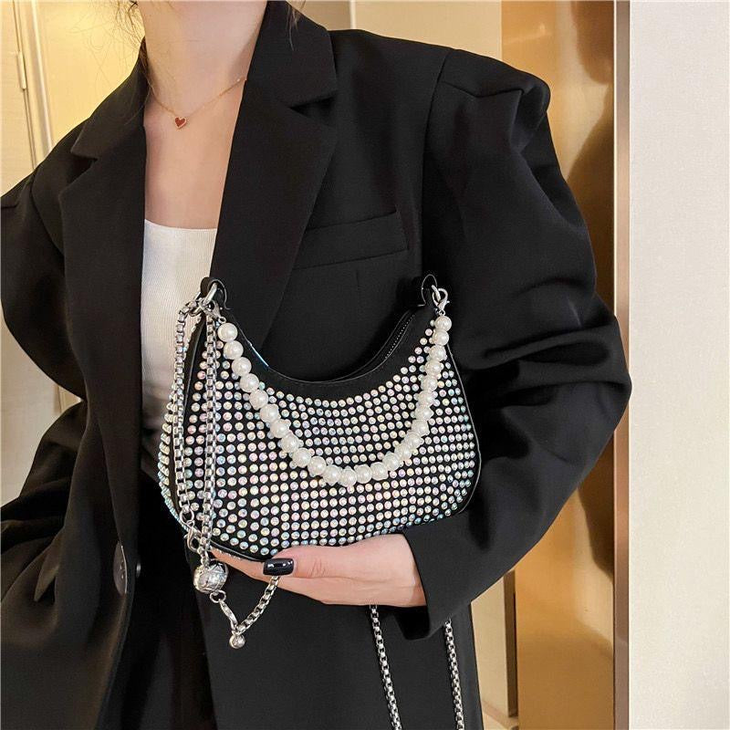 This Rhinestone Hobo bag is the perfect accessory for any stylish girl. With its intricate rhinestone design, it adds a touch of glamour to any outfit. Made from high-quality materials, it is durable and perfect for everyday use. Elevate your style with this elegant and eye-catching bag.